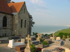 Le cimetière de Varengeville-sur-mer se trouve sur le littoral du Pays de Caux. Les falaises battues par les vents sont le cadre enchanteur du tout petit cimetière communal. Eugène Isabey, Monet, André Breton ou Raymond Queneau : de nombreuses personnalités fréquentèrent à diverses époques cet endroit, calme et sans doute fécond à l’imagination.