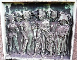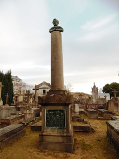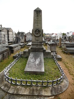 – Camille MELLINET (1795-1843) : frère du général Mellinet (qui repose au cimetière Miséricorde), il fut imprimeur, journaliste et historien. Il prit en 1820 la tête de la maison d’édition et imprimerie Malassis dirigée par sa mère, qui était la fondatrice du Journal de Nantes et de la Loire-Inférieure, premier journal d’opinion nantais. Il développa considérablement l’entreprise en introduisant, le premier dans la région, la presse mécanique. Il fut l’éditeur ou le fondateur de plusieurs revues littéraires et scientifiques. Je n’ai pas trouvé l’identité de son buste en bronze perché sur sa colonne, pas plus que la raison d’être du bas-relief qui orne sa tombe.