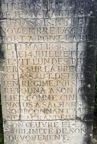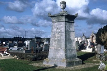 – Au registre du folklore, néanmoins très intéressant, figure la tombe du compagnon Jean-Martin BIENASSIS (1766-1838), dit Saintonge La Liberté, qui participa à la prise de la Bastille. L’intérêt essentiel du monument réside dans ses inscriptions. L’une des faces de la stèle indique : "Ici repose le corps de Jean-Martin Bienassis né le 11 novembre 1766 et mort à Pont l’abbé le 12 mai 1838 . Le 14 juillet 1789 le vit l’un des premiers sur la brêche à l’assaut de l’ancien régime ; puis il retourna à son atelier comme Cincinnatus à sa charrue soupçonnant à peine la grandeur de son oeuvre et la sublimité de son dévouement". Sur l’autre est écrit : "Passant si jamais la haine du despotisme pouvait faiblir en ton âme au retour anniversaire de ce quantième où il s’est immortalisé viens sur sur cette tombe évoquer le vainqueur de la Bastille et te ret(r)emper dans son souvenir".