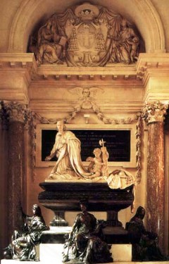Oeuvre des sculpteurs Coysevox, Tuby et Le Hongre, le monument funéraire de Mazarin ne fut terminé qu’en 1693, soit plus de trente ans après sa mort. Initialement prévu pour être érigé au centre de l’édifice, sous la coupole, le cénotaphe trouva place dans une chapelle latérale. Le monument a été remis à son emplacement d’origine en 1961.