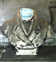 – La statue en terre-cuite par Gossin sur sa propre tombe est décapitée.