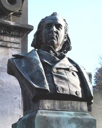 – Le buste en bronze par Jean-Jacques Elshoecht sur la tombe de Jean-François Lesueur.