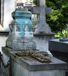 – Le buste en marbre par Denis Foyatier qui orne la tombe Gall est décapité : il n’en reste que le col.