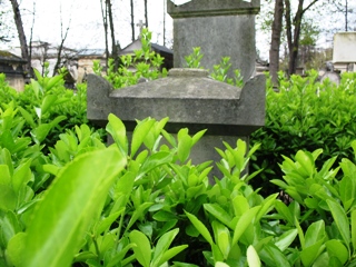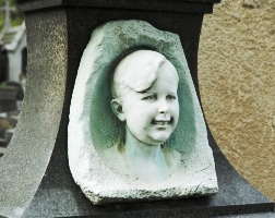 – Le buste ne bronze sur la tombe Grélot (coulures de vert-de-gris).