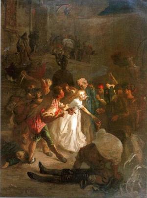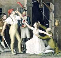 L’anecdote est la suivante : lors du procès de 300 détenus soupçonnés d’activisme anti-révolutionnaire, dont son père, elle le sauva provisoirement en se jetant courageusement dans la foule et en demandant au peuple de Paris sa grâce. Elle le fit avec tant de courage qu’elle l’obtint, mais au prix d’un terrible marché fixé par Stanislas Marie Maillard dit Tape-Dur : son père serait épargné si elle buvait un verre de sang bleu frais. Tape-Dur aurait plongé un verre dans un baquet, qui recueillait le sang des victimes décapitées, l’aurait tendu à la Comtesse qui, sans hésiter, l’aurait bu d’un trait en criant "vive la nation". Cette marque d’amour filiale fut honoré par la prose et les vers : Victor Hugo, Jacques Delille ou encore Gabriel-Marie Legouvé s’en emparèrent.