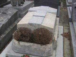 début 2012 : la tombe a été nettoyée, redressée, et une indication, bien utile pour sa future conservation par les autorités du cimetière, a été ajoutée.