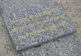 médical dans le contexte de la révolution industrielle pour avoir été sauvé de la rage, alors qu’il avait neuf ans, par Pasteur. Il fut effectivement le premier être humain sur lequel fut tenté le vaccin inventé par Pasteur, qui n’avait jusqu’alors été expérimenté qu’en laboratoire. Il est à noter que si belle soit l’anecdote, certains scientifiques mettent en doute le fait que le chien ait eu la rage. Plus tard, Joseph Meister devint gardien de… l’Institut Pasteur. Il se donna la mort en 1940 en raison de l’entrée des Allemands dans Paris [1].