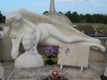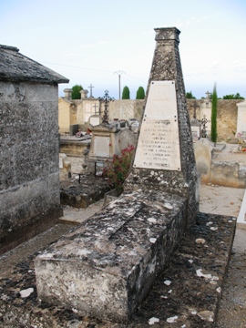 Sa tombe est adossée contre le mur gauche de la partie ancienne du cimetière.
