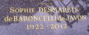 Sophie Desmarets fut marié avec René Froissart en 1942 puis avec Jean de Baroncelli en 1950, qui la fit marquise. Elle repose donc auprès de son second mari, Jean de BARONCELLI de JAVON (1914-1998), fils du cinéaste Jacques de Baroncelli, qui fut lui-même écrivain et critique de cinéma.