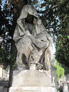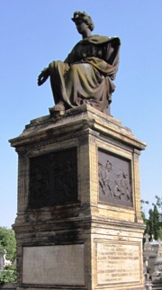 Pour information, la tombe n’est pas en bronze, mais en fonte de fer ! La statue et les quatre bas-reliefs en témoignent : la couche de rouille le prouve aussi.