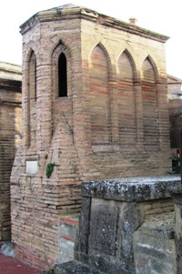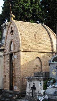 – Ville rose oblige, de nombreux tombeaux du cimetières sont réalisés non en pierres de taille ou en marbre mais en briques, recouvertes ou non.