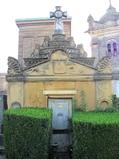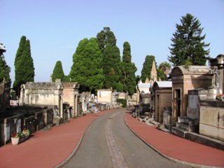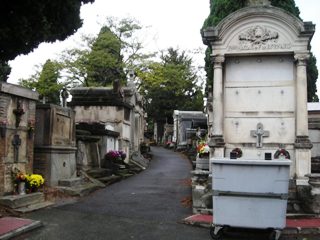 la réunion, en une enceinte commune, des enclos des couvents. Ils se partagent l’espace, chacun étant constitué d’un ou plusieurs tombeaux enceints de grilles. Une porte sépare symboliquement le cimetière laïc de ce cimetière.
