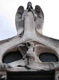 – La très photogénique petite sculpture de la tombe Weigele-Grunenwald est intitulée La mort de la colombe par Henri Wegeile. J’ignore si cette tombe est celle de l’artiste, ou simplement une tombe de famille.