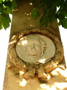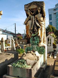 – La tombe Vicart, du début du XXe siècle, se signale par un double médaillon écrasé et une épitaphe peu classique : C’est pour reprendre une habitude ancienne que j’ai refait ma chambre à coté de la sienne.