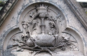 – Comme c’est toujours le cas des villes épiscopales, on y trouve pléthore de membres du clergé (chanoine, archidiacre...) dont le rassemblement des sépultures, au centre d’une rotonde ancienne, constitue le coeur ancien du cimetière. On trouve cependant des tombes d’ecclésiastiques dans tout le cimetière, les unes et les autres développant l’intégralité de la symbolique pastorale funéraire (ciboire, pallium, Saint-Esprit...).