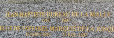 Profitons de l’évocation du père pour présenter son fils : Adolphe DUREAU de la MALLE (1777-1857). Tout comme son père, il fut un peu un "touche-à-tout", mais son terrain de prédilection alla à la géographie et au naturalisme. Les très nombreux ouvrages dont il fut l’auteur lui valurent d’entrer en 1818 à à l’Académie des inscriptions et Belles-Lettres. Il mourut sans descendance. Bien que mort à Mauves, il repose dans la 12ème division du Père Lachaise, tout près de Géricault.
