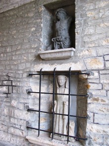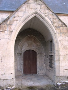 Sous le portail on peut admirer diverses statues, dont une de Saint-Marcouf.