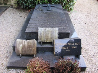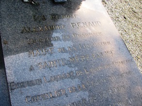 Dans une autre partie du cimetière, une personnalité peu connue, mais représentant pourtant un symbole fort : Alexandre RENAUD (1891-1966) était pharmacien, mais surtout il était en juin 1944 maire de ... Sainte-Mère-l’Eglise ! A ce titre, c’est lui qui accueillit les troupes alliées dans sa commune le 6 juin 1944. Avec lui repose son épouse, Simone RENAUD (1899-1988). Peu après le débarquement, sa photo parut à la une du magazine américain Life, la représentant, un bouquet à la main, en train de se recueillir sur la tombe d’un soldat américain, tué au combat. La photo la rendit célèbre aux États-Unis. Simone Renaud y devint le symbole de l’amitié de la France pour ses libérateurs et la reconnaissance pour les soldats venus à son secours. Dès lors, la femme du maire de Sainte-Mère-Église, "Mother of Normandy", servit de relais aux familles ayant perdu un des leurs en Normandie, entretenant avec eux une correspondance, les accueillant souvent lors de leurs pèlerinages.