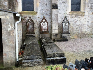 C’est autour de l’église que le petit cimetière se tient toujours. Contre l’édifice, parmi les plus vieilles tombes, se trouve :