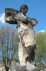 – La statue en pierre fort abîmée de la tombe Houel (Père Lachaise, 62ème division)