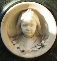 – Le médaillon en marbre de la tombe Lecreux (Père Lachaise, 9ème division)