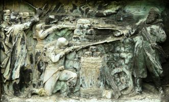 – Le bas-relief en bronze de la tombe de Denis Dussoubs (cimetière Montparnasse, 8ème division).