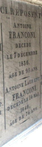 Antonio Franconi fut inhumé dans une chapelle de la 35ème division du Père-lachaise.