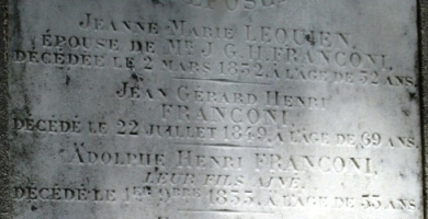 Adolphe Franconi mourut en 1855 : il est inhumé dans la tombe immédiatement à droite de la chapelle Franconi, avec son père.