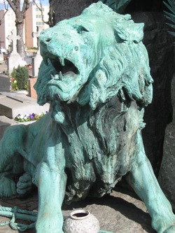 Le magnifique & énorme lion en bronze qui signalait la tombe de la famille Bidel, que vous reproduisez, ainsi que le buste souriant de Dailly (comédien de la fin du XIXème siècle) ont disparu, volé pour le métal...
