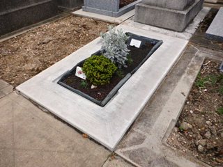 Fort bien, mais selon le conservateur "A cette époque là (1944) on ne prêtait pas attention aux célébrités ou ex, aussi la sépulture de 30 ans arrivée à échéances et après les délais habituels de rémission... fût relevée". Aussi si la plaque indique que l’artiste est inhumée ici, il faut lire...était.