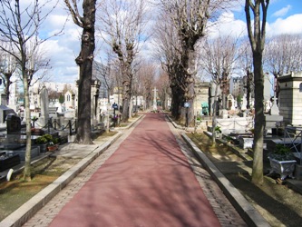 La rue qui conduit au cimetière est la rue du Ménil, à 5’ à pieds du métro station Gabriel Péri.