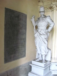 Dans le monument un grenadier et un dragon veillent sur une simple dalle sur laquelle est gravé : "Ci gît un soldat". Son tombeau a été restauré en 2010.