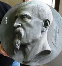 Lui-même repose sous un médaillon en bronze réalisé par l’une de ses élèves, Amélie Bigot.
