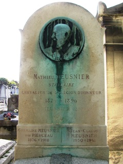 le monument funéraire de la famille ERRAZU au Cimetière du Père Lachaise N ’EST PAS l’oeuvre de Mathieu-Meusnier mais du sculpture espagnol MIGUEL BLAY Y FABREGA ((1866-1936) pour lequel il obtint le Grand Prix à l’Exposition Universelle de Paris de 1900. Tous les groupes de sculptures sont signés par l’artiste Miguel Blay 1900 ; La maquette de l’un des groupes (La Foi) est entrée dans les collections du Musée d’Orsay en 2011.