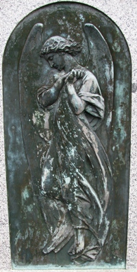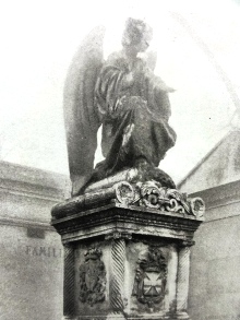 – L’ange en adoration sur la tombe de Gustave Darnay de Laperrière. Très ruiné, une photographie de 1928 permet de voir à quoi il ressemblait.