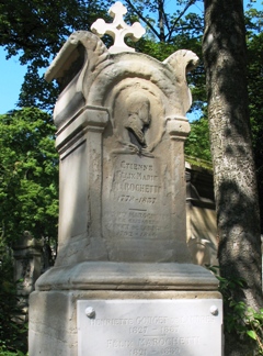 – Le tombeau Marochetti (8ème division). Il s’agit de la sépulture de son oncle, Étienne-Félix (+1837), qui est représenté sur le très abîmé profil en pierre de Conflans.