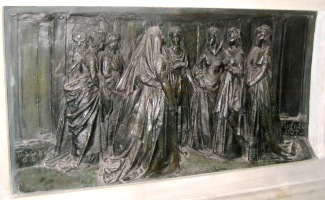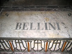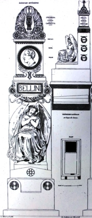 Le monument Bellini se caractérise, dans la partie supérieure du cippe, par un portrait en médaillon du compositeur.