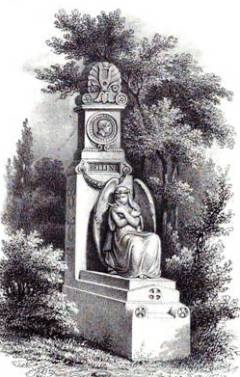 La contribution de Marochetti ne s’arrêta pas au médaillon. Avant l’exhumation de Bellini, ce tombeau, exécuté sur les dessins de l’architecte Guillaume-Abel Blouet, comportait « une statue de femme ailée, assise, serrant une lyre sur son cœur », qui n’est pas sans rappeler celle de la tombe de Chopin.