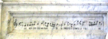 L’inscription qui est portée sur le tombeau est l’incipit de l’aria de La sonnambula : « Ah ! non credea mirarti / Sì presto estinto, o fiore ».