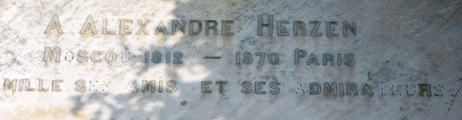 Philosophe et essayiste russe, il est connu comme le père du socialisme russe, et est considéré comme un inspirateur du climat politique qui a mené à l’émancipation des serfs en 1861. A ce niveau, le soulèvement des décabristes en décembre 1825 fut un événement-clé dans sa vie. Celle-ci fut faite d’exil, en Russie tout d’abord, puis en France où il s’installa en 1847, et où il collabora avec Proudhon. Patriote, Herzen s’occupa principalement de combattre le régime tsariste par ses articles dans L’étoile polaire (1857-65). De 1857 à 1865, il publia Kolokol (La Cloche), journal d’inspiration socialiste-libertaire visant la cause révolutionnaire russe. Malgré la censure, ses articles eurent un grand impact en Russie. Il mourut peu de temps avant la Commune et repose ici, dans la partie orthodoxe du cimetière.