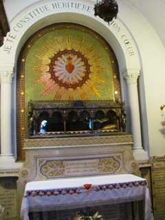 Ce n’est pourtant pas ici que notre recherche taphophilique va nous mener : un peu plus loin dans le village se trouve la chapelle de la Visitation où auraient eu lieu, selon la tradition, la plupart des apparitions du Christ à Sainte Marguerite-Marie entre 1673 et 1675. A droite du choeur, une petite chapelle abrite la châsse de Sainte Marguerite-Marie Alacoque (1647-1690), où repose un moulage de cire recouvrant ses ossements. Cette châsse date de la béatification de la religieuse en 1864. Elle fut canonisée en 1920 par le Pape Benoît XV.