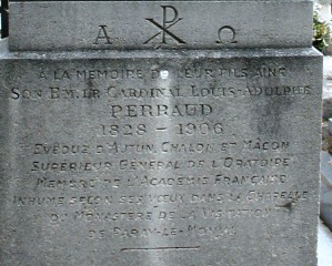 C’est également dans cette chapelle, à sa propre demande, que repose, selon la tradition qui intègre des ecclésiastiques en son corps, un académicien français : Adolphe PERRAUD (1828-1906). Cardinal et évêque d’Autun à partir de 1874, il enseigna l’histoire ecclésiastique à la Sorbonne. Il fut l’auteur d’ouvrages d’histoire religieuse.