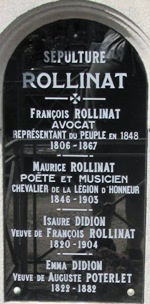 où se rassemblaient de jeunes poètes décadents se voulant anticléricaux, antipolitiques et antibourgeois. Malade et fatigué, il se retira pourtant dans la Creuse. Il repose auprès de son père, l’avocat François ROLLINAT (1806-1867), grand ami de George Sand, qui fut député de l’Indre dans l’Assemblée de 1848. Il transmit sa nature taciturne et dépressive à son fils.
