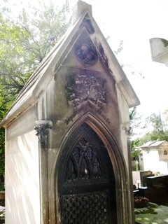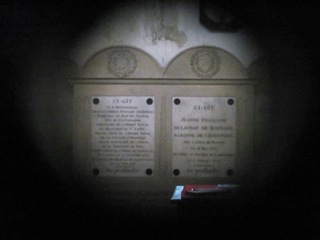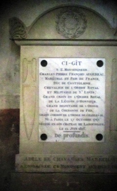 Dans les faits, il mourut en son château de La Houssaye-en-Brie (Seine-et-Marne) et fut enterré avec son épouse dans le cimetière jouxtant l’église Saint-Nicolas. Lors de la suppression de ce cimetière en 1854, leur corps furent transférés dans la chapelle familiale de l’époux de sa seconde épouse au cimetière du Père-Lachaise, dans la 59e division. Leur monument funéraire d’origine fut placé dans l’église Saint-Nicolas de La Houssaye-en-Brie, où il se trouve encore, désormais cénotaphe. La stèle funéraire est posée à l’intérieur de l’église de La Houssaye. On peut y lire : "Adèle de Chavanges Maréchale et Duchesse de Castiglione a consacré ce monument aux deux objets de ses plus chères affections." Ce monument a été classé le 29 Décembre 1906. L’église étant fermée, c’est encore le trou de la serrure qui me permit d’obtenir une photo du tombeau !