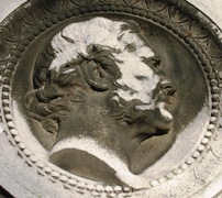 – A Thoiry (78) : le médaillon en marbre de Robert de Vogüé.