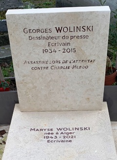 Son épouse, la journaliste et écrivaine Maryse WOLINSKI (1943-2021) repose avec lui. Elle travailla pour Sud Ouest et Le Journal du dimanche. Après l’assassinat de son mari, elle lui consacra trois livres et jusqu’en 2020, poursuivit un projet auquel son mari était très attaché : la création, à Paris, d’une « maison européenne du dessin de presse ».