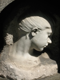 Elle est représentée en bronze sur la tombe. Dans l’un des coins de la composition figure une représentation de la mère de l’artiste.