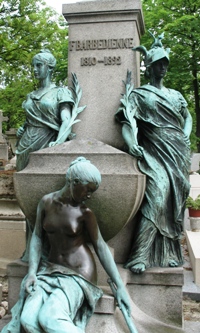 – Le groupe de trois statues en bronze grandeur nature L’Inspiration, Le Travail, La Petite Boucher, sur la sépulture de Ferdinand Barbedienne (53ème division) [2].