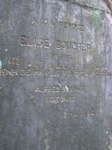 Dans son célèbre guide, Bertrand Beyen enterre Alfred Boucher à Bouy-sur-Orvin (sa commune natale), et n’indique dans ce cimetière que l’épouse de ce dernier. C’est une erreur : c’est bien à Nogent que repose le sculpteur, même si la tombe rend effectivement exclusivement hommage à son épouse.