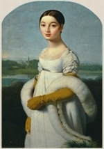 Comme dans un portrait renaissance, la demoiselle est représentée debout devant un paysage idyllique et baigné de soleil où coule une rivière qui est peut-être là pour rappeler le nom du modèle. On trouve dans cette peinture une exemple de « monstre » ingresque (le terme est d’Odilon Redon). Les bras trop longs sont le contrepoint du visage à l’ovale parfait reposant sur de très (trop ?) frêles épaules. Ingres, que l’on qualifie volontiers de classique, montre ici à quel point il ne l’est pas : il préfère sacrifier le réalisme des proportions au profit de l’équilibre de la composition. Caroline, qu’Ingres trouvait « ravissante », nous dévisage, à la fois innocente, teint de porcelaine et fraîche robe de mousseline blanche, et sensuelle, dans une étole d’hermine et les mains et avant-bras gantés d’or... Le portrait, qui date de 1805, fut exposé au Salon de 1806 où il ne fut apprécié que du fait de la fraîcheur du sujet qu’un critique compara à « un bouton de rose ».